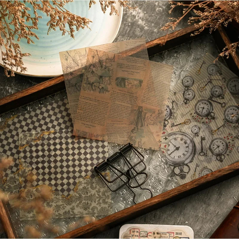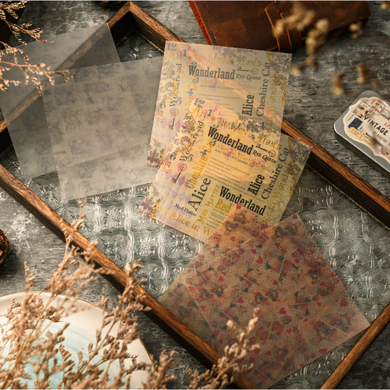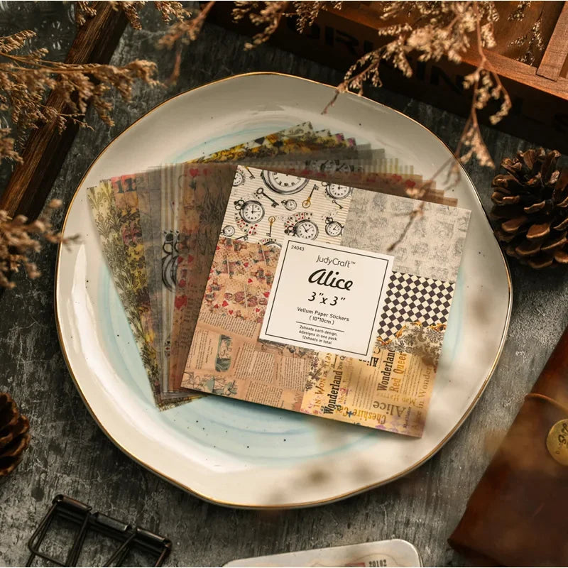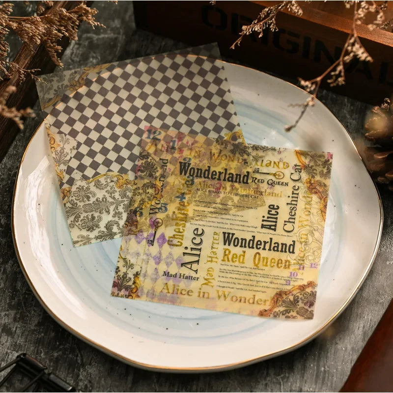 Each set includes 6 unique designs, 2 sheets per design — perfect for scrapbooking, collage art, and stationery lovers who cherish the charm of vintage storytelling. Whether you layer them or let the transparency shine through, these Alice in Wonderland stickers create subtle dimension and timeless intrigue in every piece you craft.