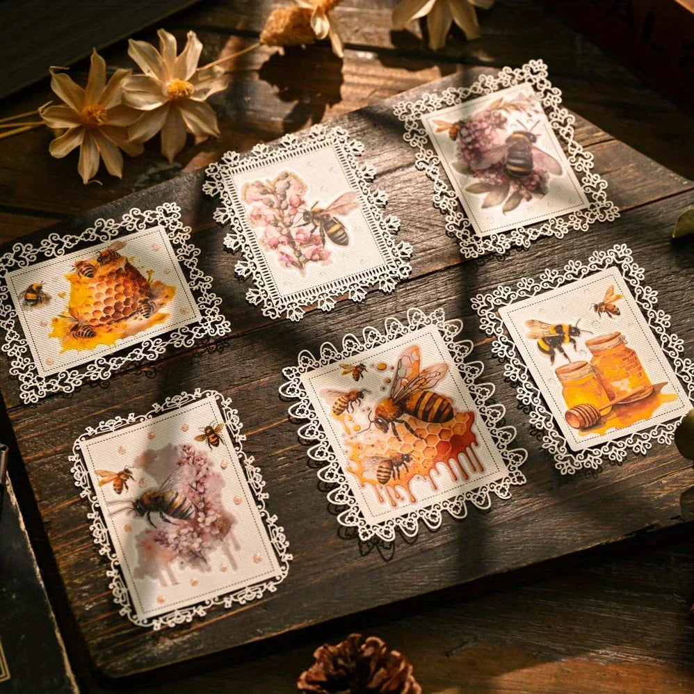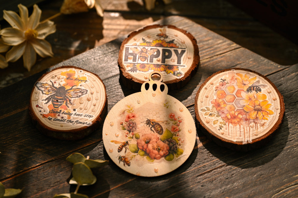The Bee Rub On Stickers Set brings the gentle warmth of nature into your journaling and creative projects. Each rub on sticker features bees, honeycombs, and wildflowers illustrated in a soft vintage watercolor style. These Bee Rub On Stickers transfer effortlessly onto paper, wood, glass, or other smooth surfaces, blending beautifully with your artwork. Perfect for bullet journals, scrapbooks, handmade cards, planners, and DIY projects, they add a touch of golden sunshine and botanical charm to every piece. Thoughtfully designed for stationery lovers who appreciate the quiet beauty of nature and handcrafted detail, this set makes your pages buzz with creativity.