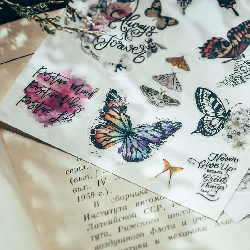 Strong in character. Soft in detail. The butterfly rub on sticker set brings a quiet kind of beauty to your pages – where wings meet words, and each transfer lands like a gentle touch of nature.
