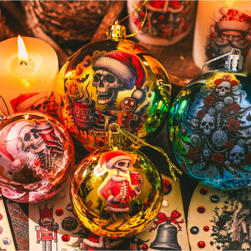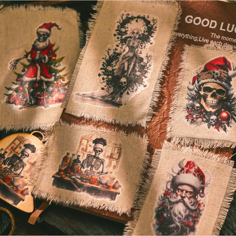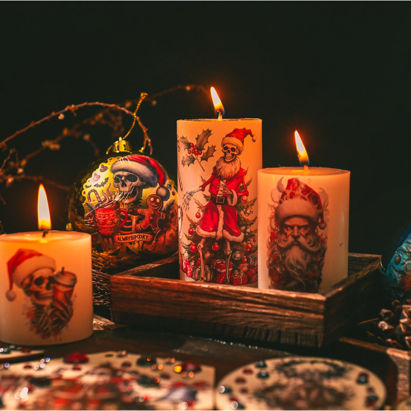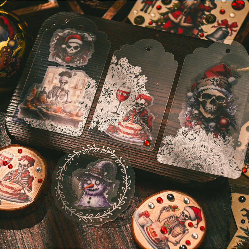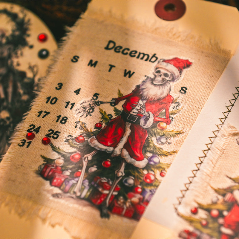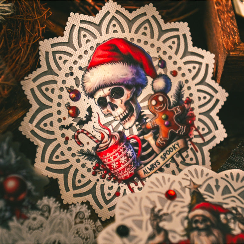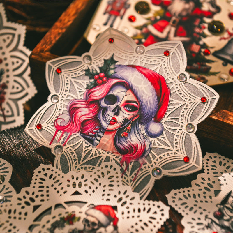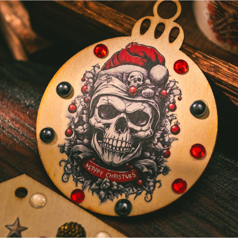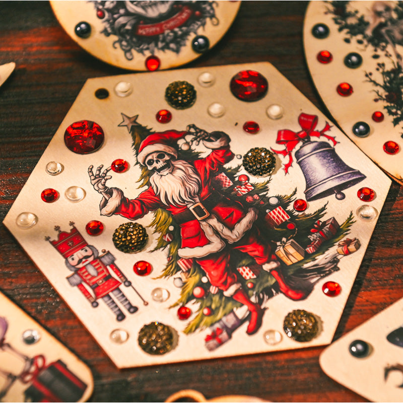This horror-inspired rub on transfer set takes holiday crafting into the dark side of festive fun. Featuring skeleton Santas, gothic skulls, creepy nutcrackers, and eerie winter scenes, each design blends Christmas cheer with a spooky twist.