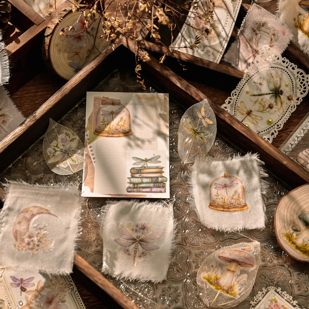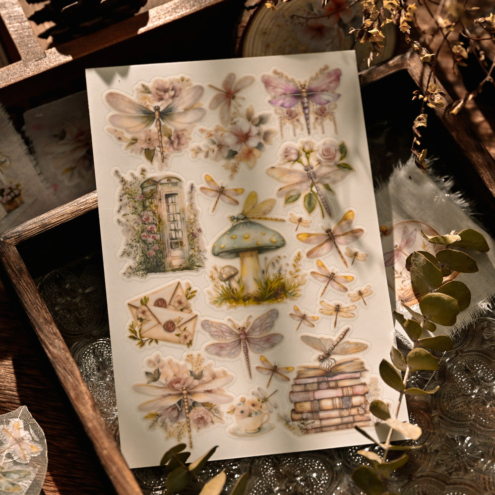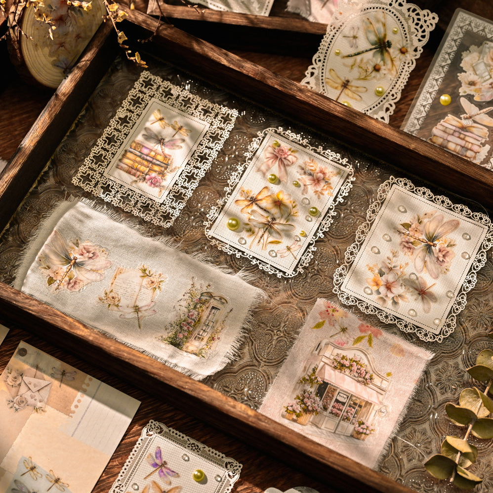 The Dragonfly Rub On Stickers set brings a soft vintage dream to your creative world. Each sheet features dragonflies, florals, books, and garden motifs, captured in watercolor tones that melt into your paper with a single rub.