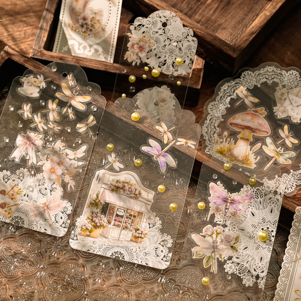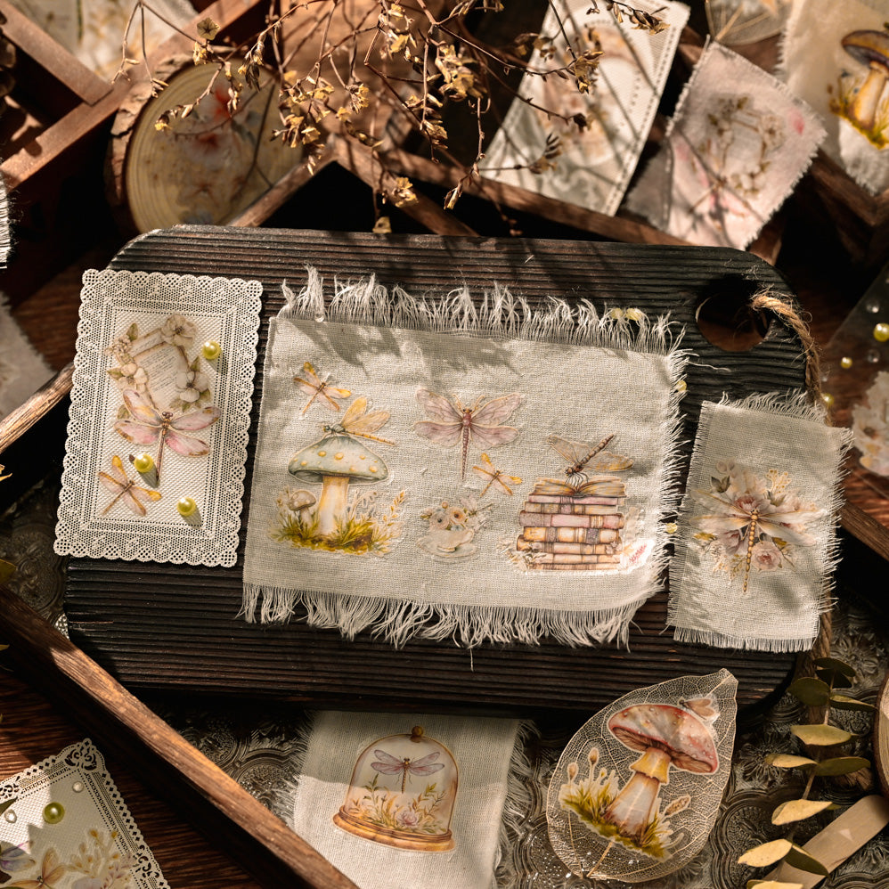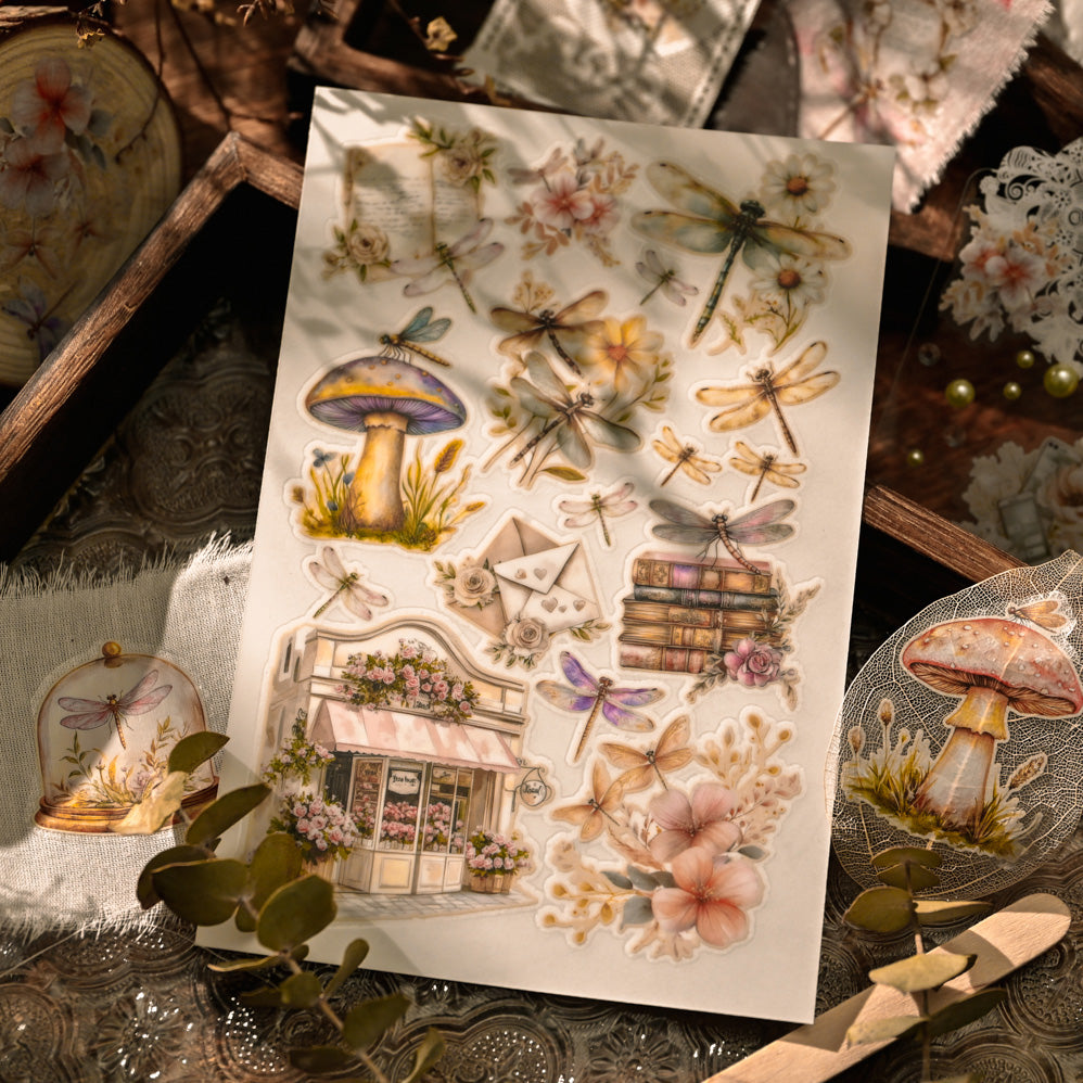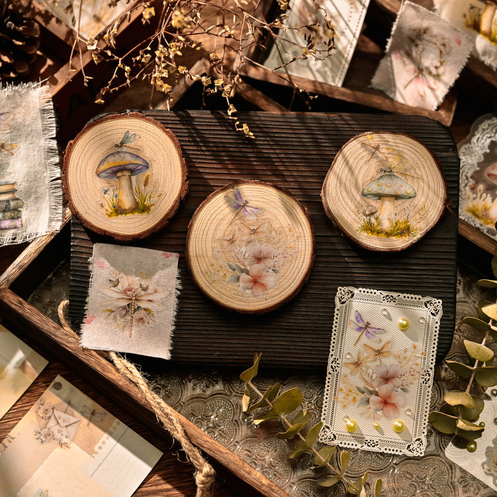 The Dragonfly Rub On Stickers set brings a soft vintage dream to your creative world. Each sheet features dragonflies, florals, books, and garden motifs, captured in watercolor tones that melt into your paper with a single rub.