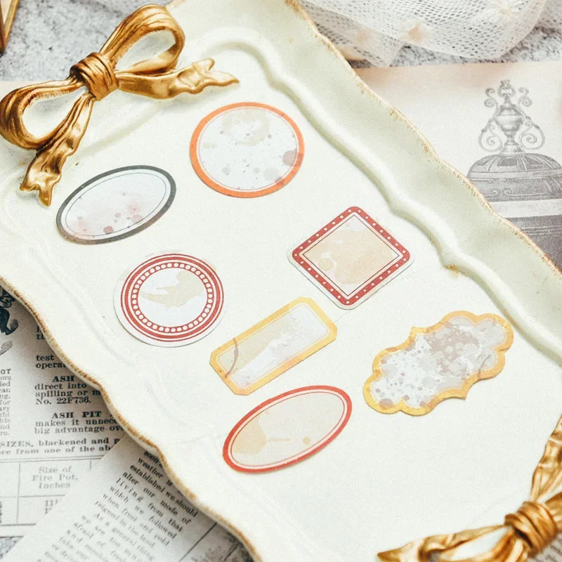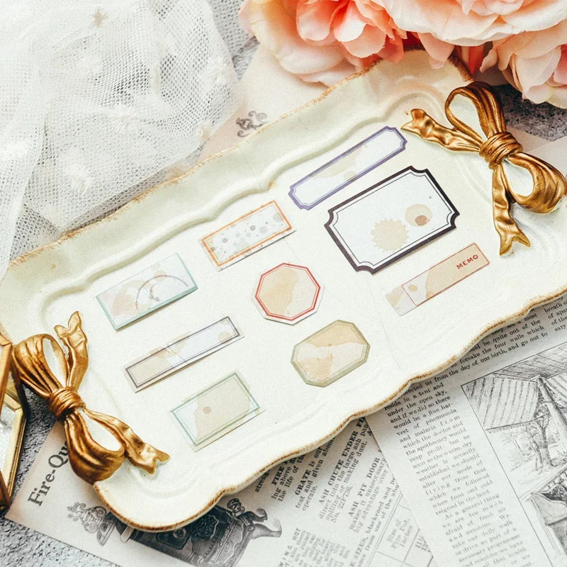 These vintage label paper stickers bring the charm of old stationery back to life. Each set includes 38 uniquely designed retro stickers, featuring soft coffee stains, aged paper textures, and elegant bordered frames. The vintage label stickers add a nostalgic warmth to your journal, scrapbook, or gift wrap, perfect for those who love timeless design. Whether you use them to mark, decorate, or layer, every label blends effortlessly into your creative pages, evoking the feeling of handwritten letters and antique archives. Made from quality paper sticker stock, they have a natural matte finish and a delicate, tactile surface that feels as authentic as it looks.
