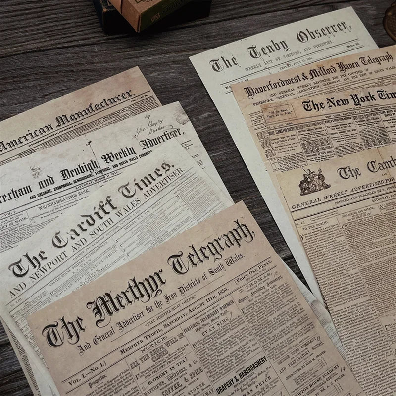 Every set includes 8 different newspaper designs, echoing publications like The New York Times and The Cardiff Times – recreated in detail and scaled to A5 size for modern creative use. Whether you’re layering them beneath photos, using them as journaling backgrounds, or cutting them for collage, Vintage Newspaper Paper A5 keeps the soul of print alive in every page.