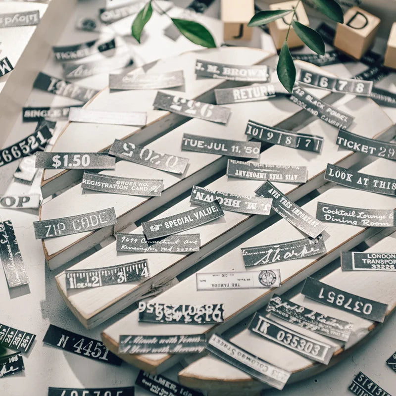 Classic type meets tactile texture. Our Vintage Typography Washi Stickers bring timeless black-and-white charm to your journal, collage, or mail art. Each strip features authentic lettering inspired by vintage tickets, signage, and transport tags – from “SPECIAL VALUE” to “RETURN” and “STOP.” Made from Japanese washi paper, they peel easily, stick cleanly, and add character without bulk.